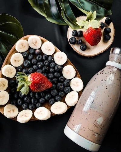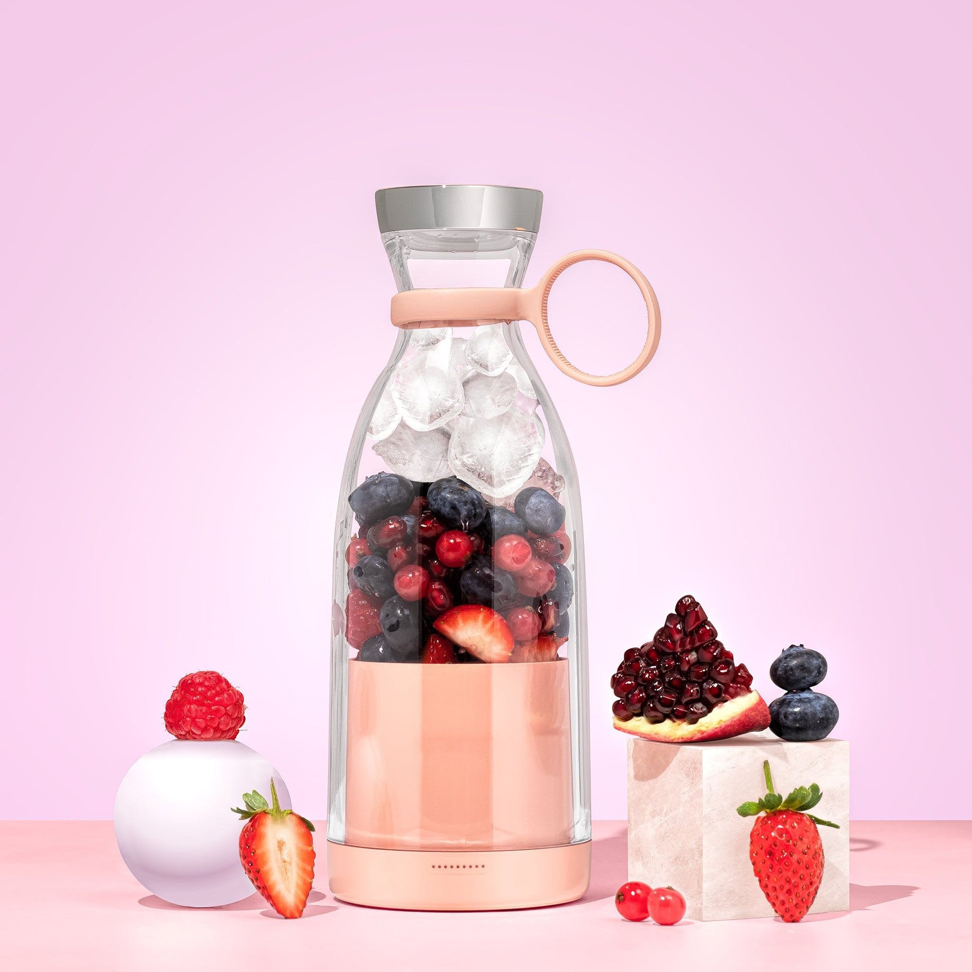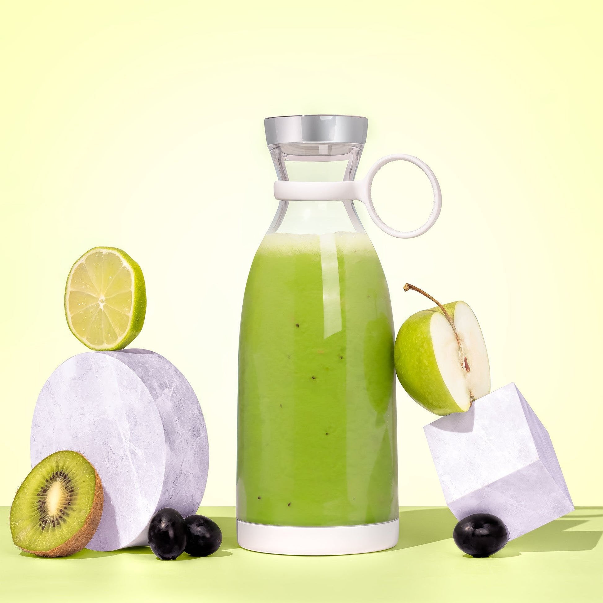 SLIM OG SLEEK DESIGN - Kompakt og estetisk design gjør det enkelt å bære rundt, flasken kan inneholde 350 ml juice og veier kun 460g.
