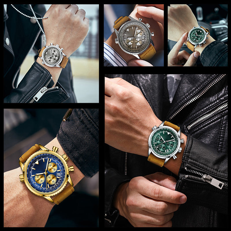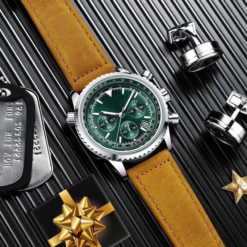 Perfekt Gave-Herreklokke Med Flere Funksjoner Kronograf Vanntett Analog Kvartsur Med Dato