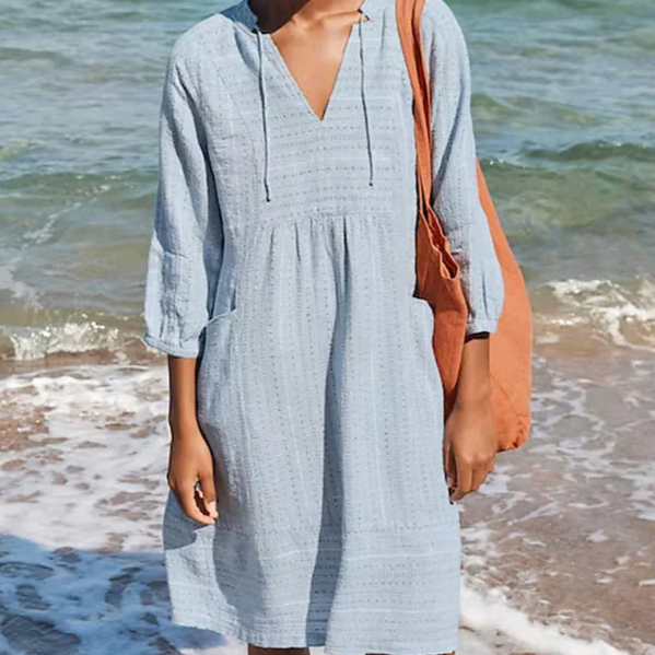 1* Kvinner Sommer V-hals Bomullslinskjole