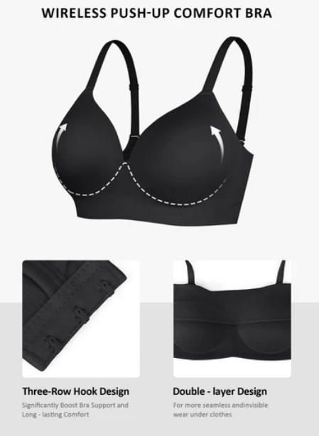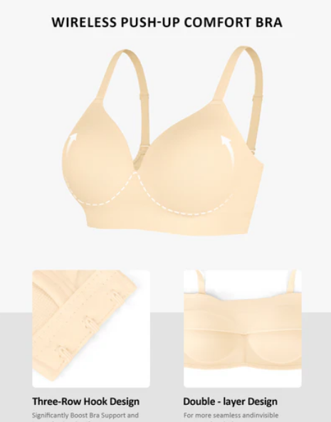 Push-Up BH Uten Bøyle: Opplev utmerket støtte uten innlegg eller bøyle. Den formede skåldesignen løfter og støtter bysten for en jevn, naturlig silhuett og reduserer slapphet.
