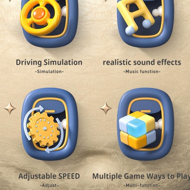 Det fantastiske leketøyhjulet kommer med venstre og høyre, musikk, horn, lyder fra forskjellige kjøretøy for å simulere kjøring.