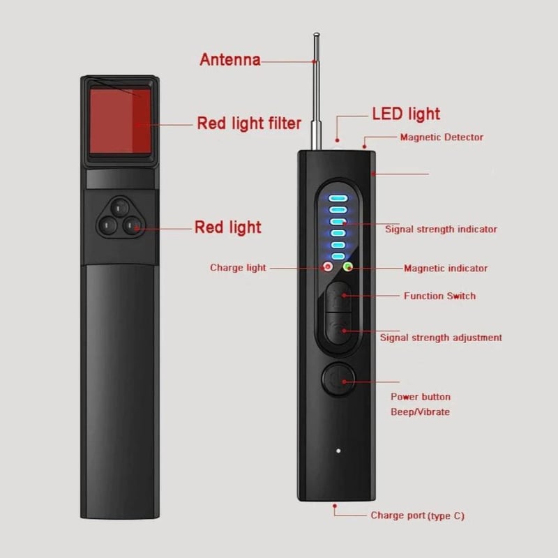 Denne enheten er svært effektiv til å detektere en lang rekke trådløse kameraer, inkludert kameraer som kan være skjult i dagligdagse gjenstander som klokker, bilderammer og røykvarslere. Den kan også oppdage kameraer som befinner seg opptil 10 meter unna, noe som gjør den ideell for bruk i større rom.