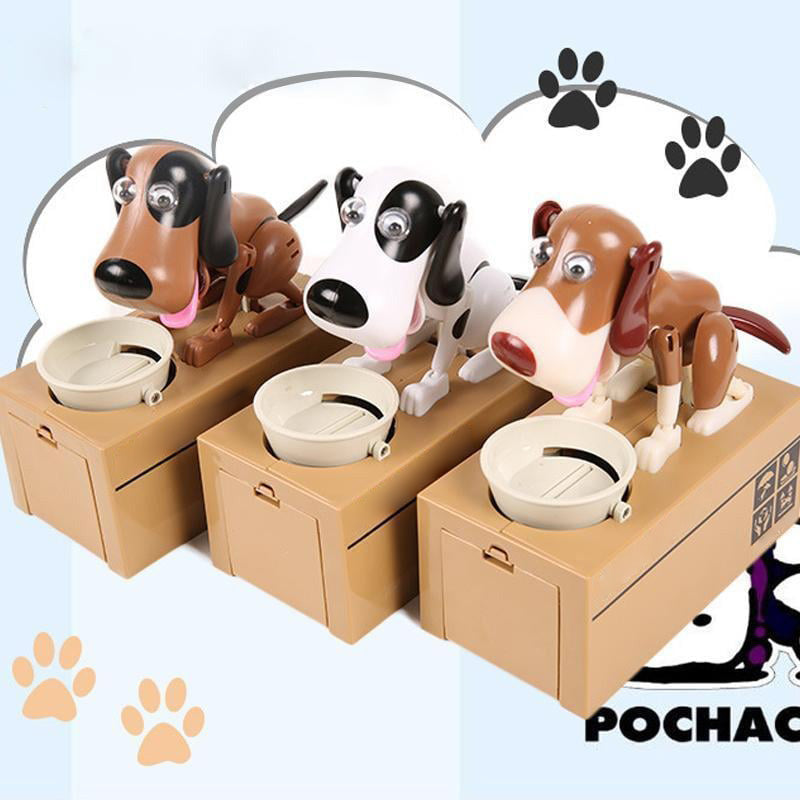 Dette er enhver samlers drøm som går i oppfyllelse og MÅ HA! Pass på å ta en av hver så lenge beholdningen rekker! Våre søte hundespisende myntbanker er flotte gaver til enhver anledning! Banken kan sette inn rundt 100 mynter. Og den trenger 2 x AA-batterier for å knaske gjennom en mengde kontanter (ikke inkludert). Etter at du har installert batteriet, sørg for at strømbryteren er i "ON"-posisjon. Etter å ha lagt myntene i brettet vil hunden reagere. Så morsomt og perfekt for alle barn som lærer å spare!
