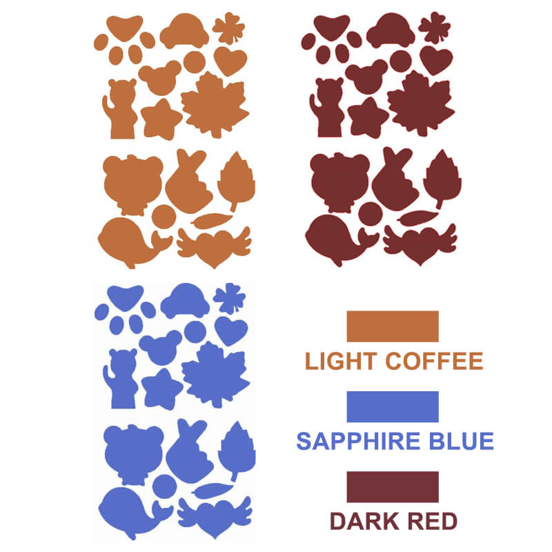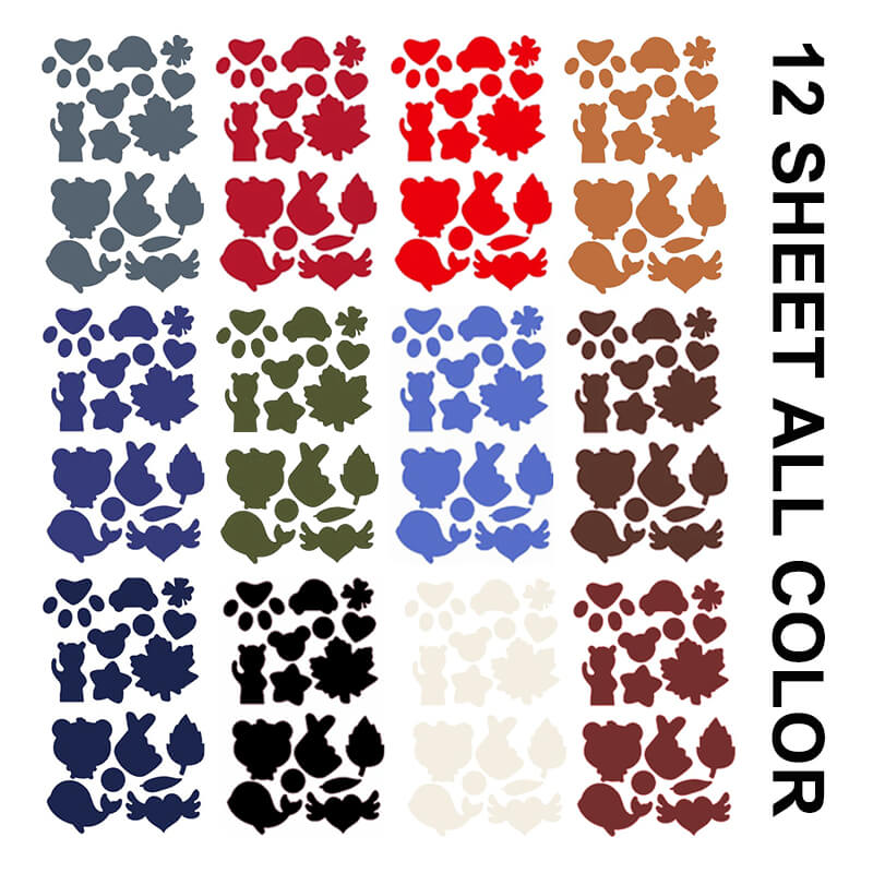 Hver pakke inneholder 1 lapp (15*20 cm) + 16 tegneseriefigurer: Den vaskbare reparasjonskluten er utstyrt med forskjellige mønstre som sommerfugler, bjørner, lønneblader, poter, hvaler, flaggermus, sirkler osv. Den egner seg for å reparere klær og kan brukes til eksklusiv dekorasjon.