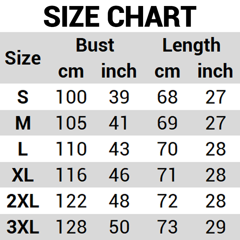 Størrelse: S, M, L, XL, 2XL, 3XL