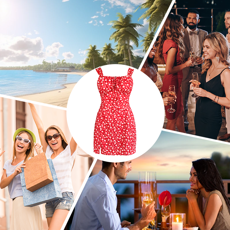KUNSTNERISK BLOMSTERFUSJON – Livlige botaniske mønstre danser over denne kjolen, og blander rødt, rosa, grønt og blåtoner i et bærbart kunstverk. Den firkantede utringningen gir et moderne preg, mens spaghettistropper sørger for komfort. Lett polyester følger hvert steg – gjør inntrykk på brunsj, dater eller hagefester!