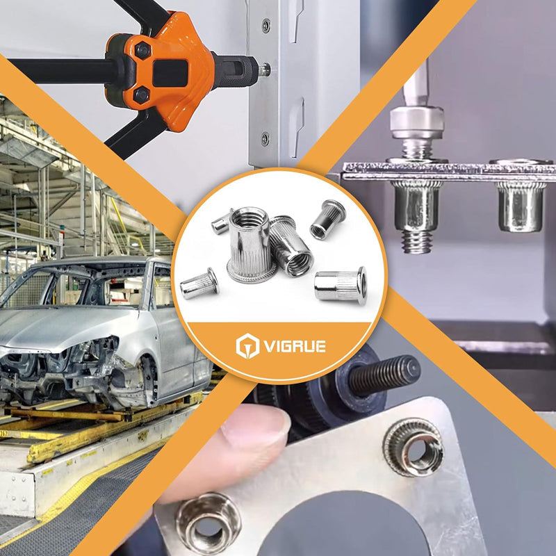 ALLSIDIG BRUK - Disse gjengede innsatsmutrene er ideelle for ulike bruksområder og gir en sikker og pålitelig festeløsning for tre, metall og plast. Enten du jobber med møbler, bilprosjekter eller håndverk, kan dette settet tilpasses dine ulike behov! Utforsk bruksområder.