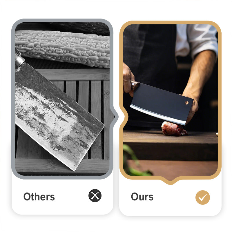 HERDET & SMIDD: Produsert med tradisjonelle smideteknikker og varmebehandling for overlegen holdbarhet. Høykarbonstålklingen motstår flassing og beholder skarpheten selv under intensiv bruk. I motsetning til billige stansede kniver garanterer denne smidde konstruksjonen langvarig ytelse i alle kjøkken.