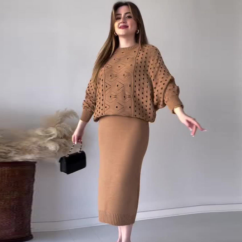 Pakken inkluderer: 1 * Gjennombrutt, langermet topp og ermeløs kjole i strikk