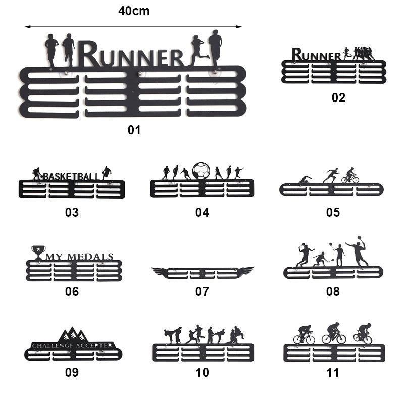 Laget av høykvalitets jern, er disse opphengerne laget for å vare. Det solide materialet sikrer at medaljene og premiene dine holdes sikkert på plass uten risiko for å falle. Du kan være trygg på at de dyrebare medaljene dine blir vist frem med den største omsorg og holdbarhet.