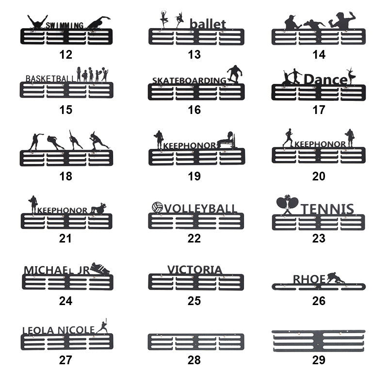 Velg blant et bredt utvalg av temastiler som passer til ulike idretter og prestasjoner. Enten det er løping, svømming eller kampsport, finnes det en opphengerdesign som passer til det tilhørende temaet.