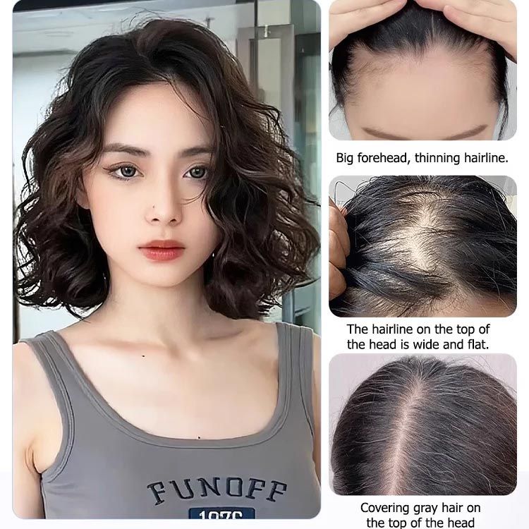 GRÅT HÅRDEKNING OG VOLUMØKING : Dekker effektivt grått hår på toppen, og gir en rask og enkel løsning for de som ønsker å forbedre hårfargen uten permanent farging. Legg til øyeblikkelig hårvolum, og dette hårstykket skaper et fyldigere utseende, noe som gjør det til et utmerket valg for de med tynt eller flatt hår som ønsker å oppnå et mer fyldig utseende.
