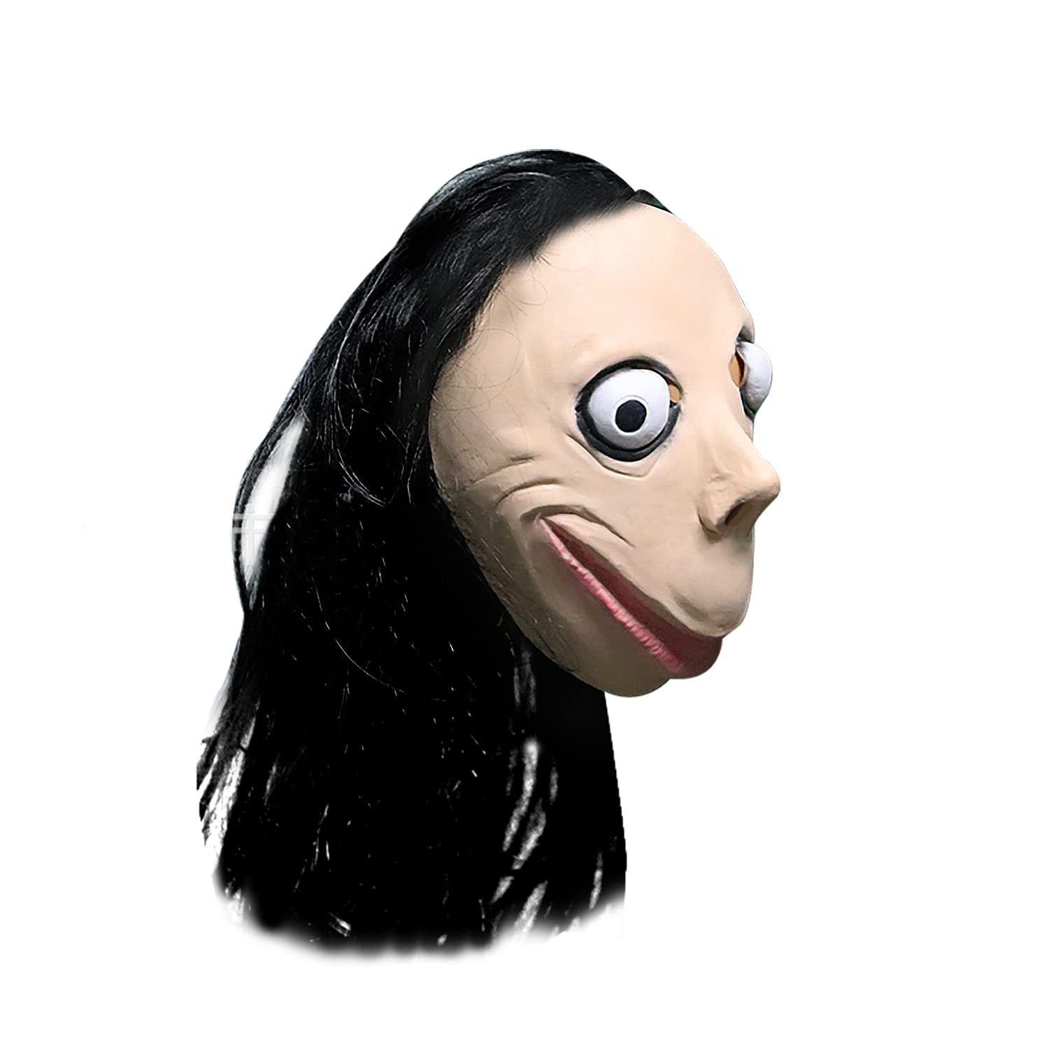 Denne masken har en upåklagelig sans for detaljer. Alt fra de rufsete og naturtro hårstråene til den realistiske hudteksturen - alt er der.Exaggerately curved lips, deep-set eye sockets, protruding eyeballs.... Den perfekte masken for skøyerstreker!