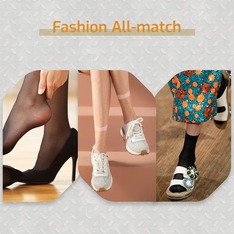 De usynlige krystallsilkesokkene er diskrete, men likevel smakfulle, og kan brukes til alle typer fottøy, inkludert høye hæler, flate sko, joggesko og mer.
