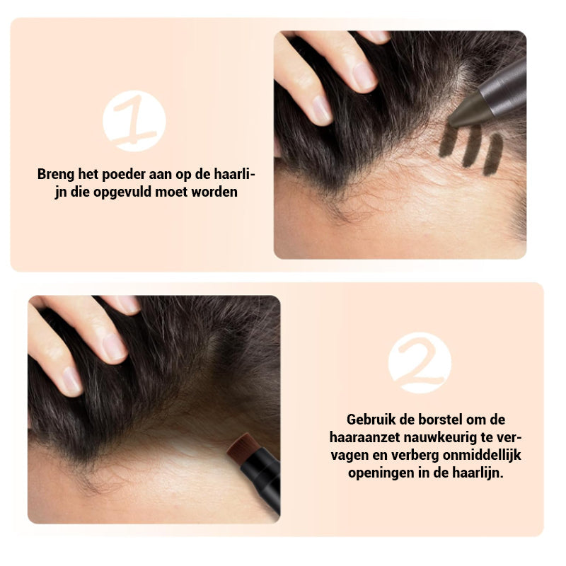 Dobbeltsidig design:Denne multifunksjonelle dobbeltsidige hÄrfestepulverpinnen har en sveipe- og bÞrsteplikator for enkel bruk, presisjon og allsidighet nÄr du dekker og oppdaterer hÄrfestet ditt, med et naturlig utseende.