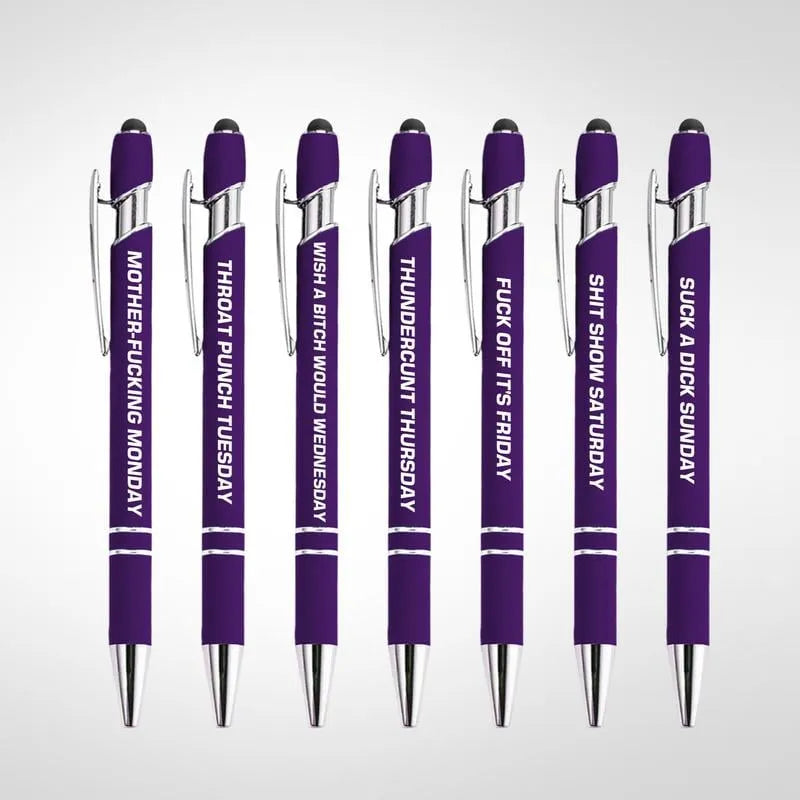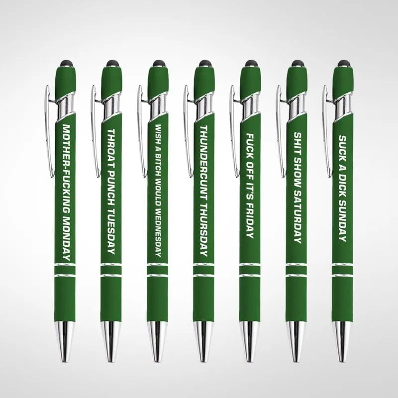 Lei av kjedelige penner? Si hei til Funny Daily Quotes Metal Ballpoint Pen Set – din nye ukelange samling av sarkasme, humor og glatt skrivetilfredshet. Hver penn kommer med et forskjellig vittig sitat, som forvandler hverdagsnotater, lister og skriblerier til et lite øyeblikk med glede.