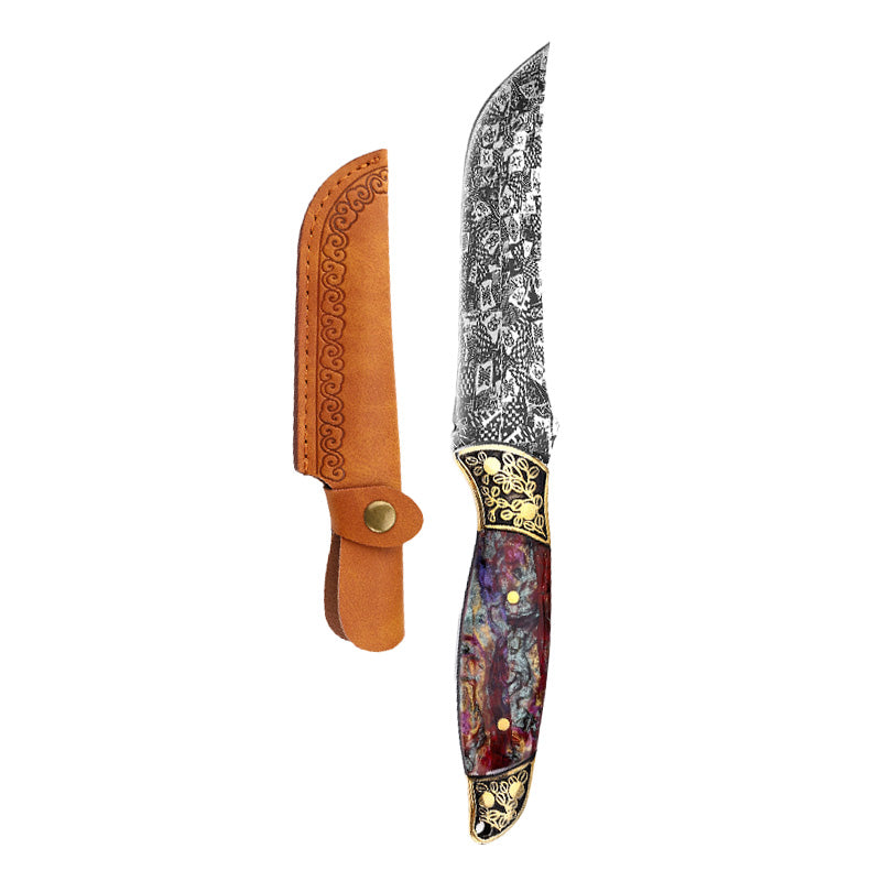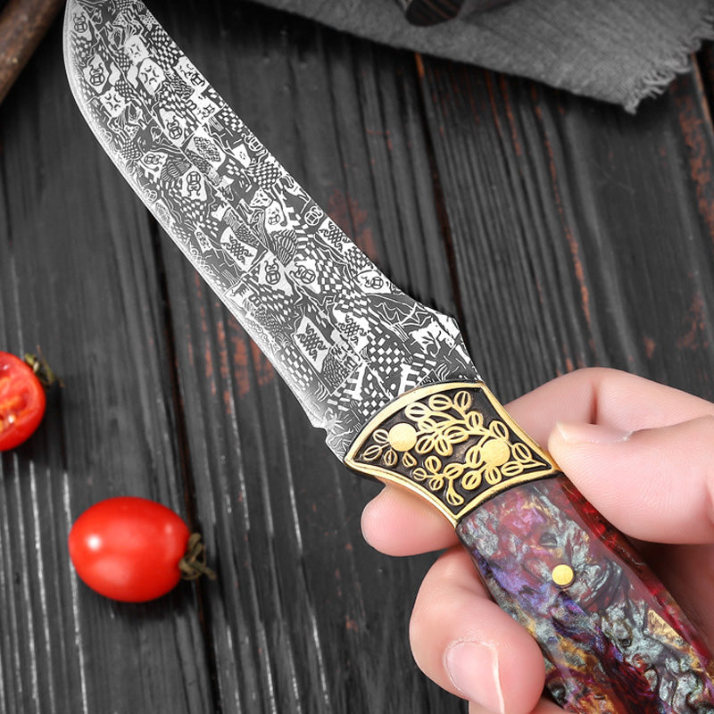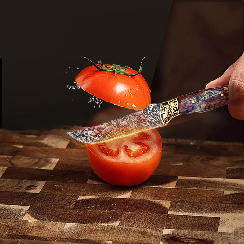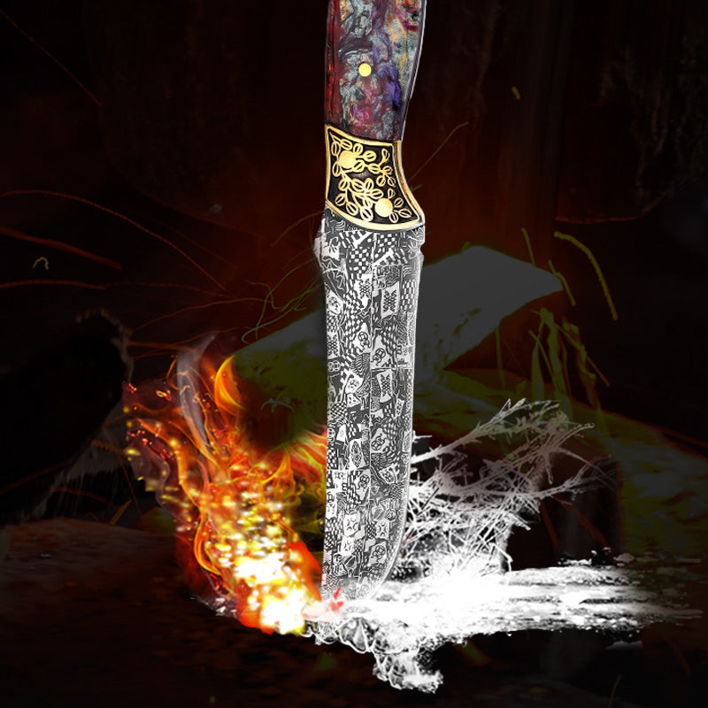 DEKORATIV KNIVMØNSTER – Bladet har et intrikat og stilfullt mønster som tilfører et preg av sofistikering. Dette designet fremhever den premium håndverkskvaliteten, noe som gjør den like visuelt tiltalende som funksjonell.