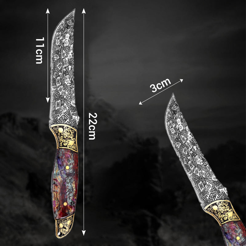 SLITESTERK STÅLKONSTRUKSJON MED HØY HARDHET – Laget av utvalgt stål, tilbyr denne kniven overlegen hardhet og motstand mot slitasje og rust. Den er designet for langvarig bruk, noe som gjør den egnet for en rekke oppgaver, fra kulinarisk forberedelse til intrikate delingsarbeid.