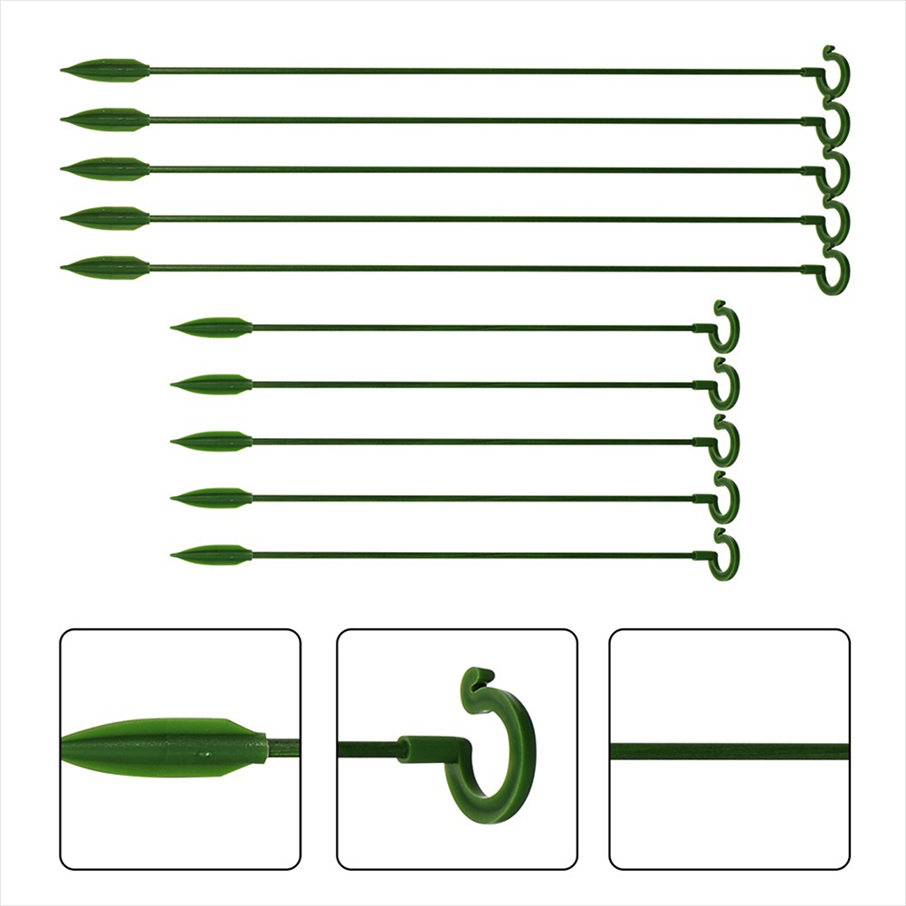 Den åpne spordesignen lar deg enkelt sette plantestilkene inn i ringen uten å knekke dem, og vil ikke føre til begrensning av veksten. Den er enkel å bruke, bare sett inn staken i jorden og få stilken inn i bøylen gjennom sporet.