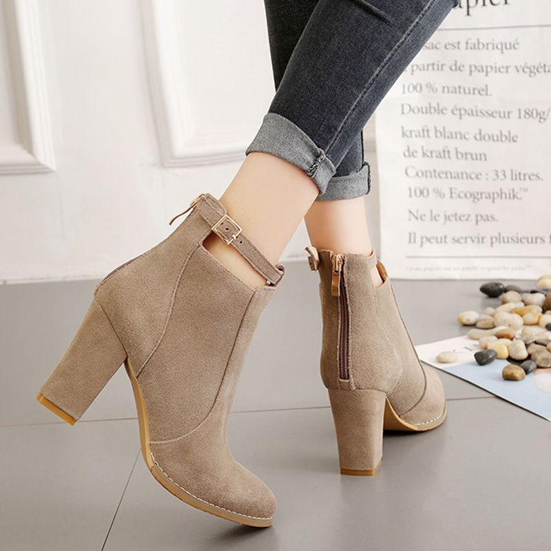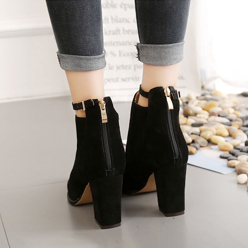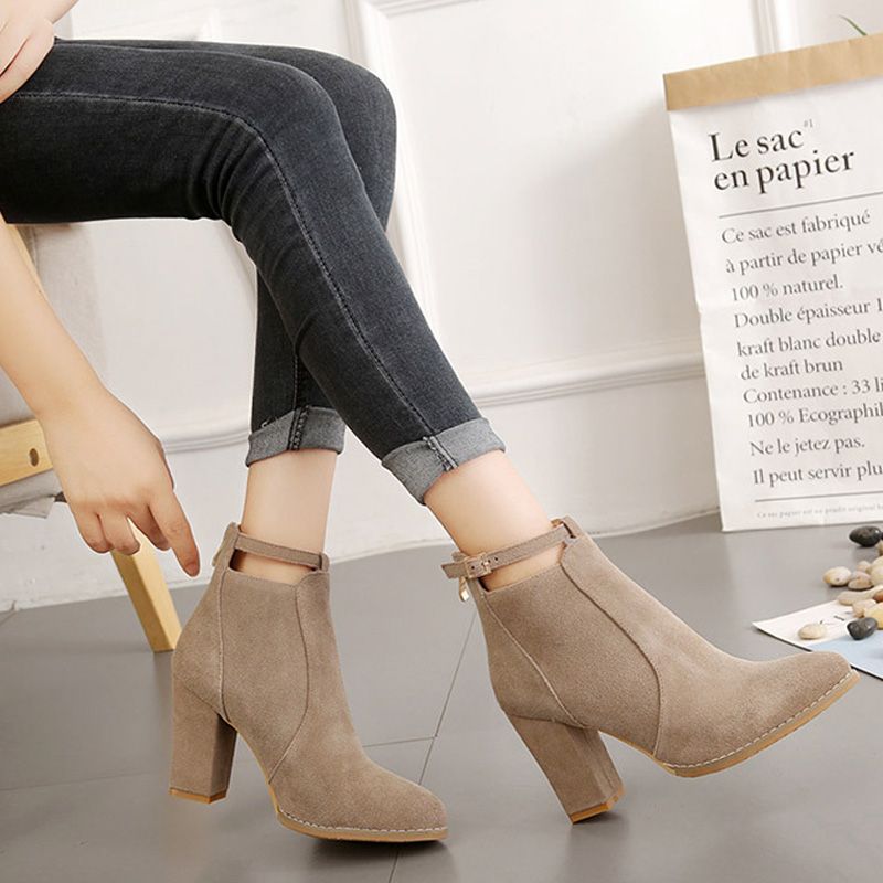 Ankelstøvler med spiss tå og høy hæl for kvinner