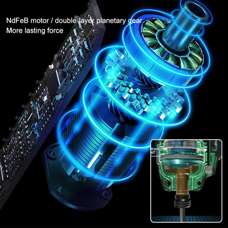 STERK KRAFT OG OVERBELASTNINGSBESKYTTELSE: Utstyrt med en høypresisjons kobberkjerne motor med stabil, kraftig dreiemomentutgang og innebygd overbelastningsbeskyttelse for å hindre overoppheting eller brann.