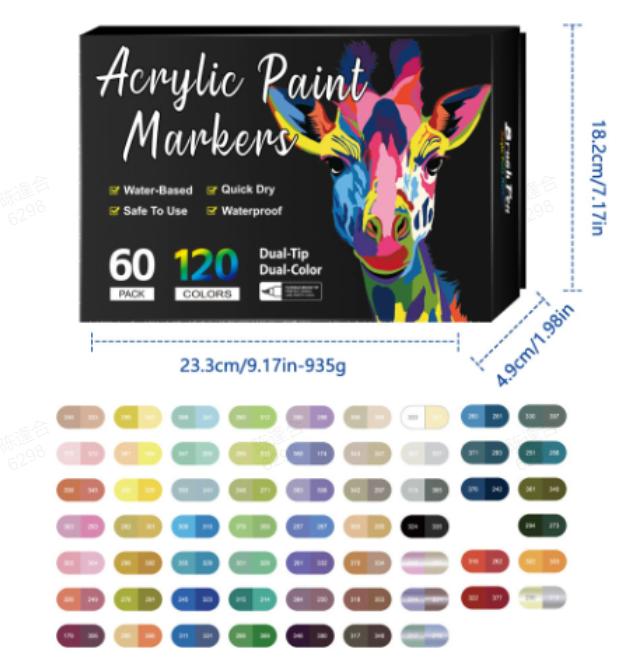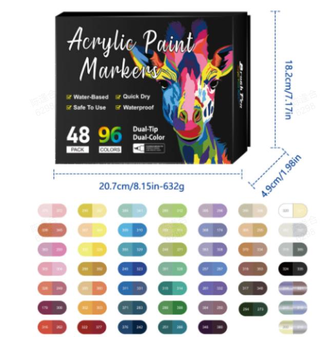 Allsidig Bruk: Disse Dobbeltipp Akrylmaling Tusj har doble tipper og mange farger, noe som gjør dem perfekte for ulike overflater som stein, tre, lerret og glass.