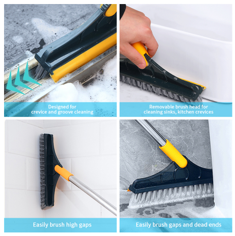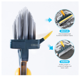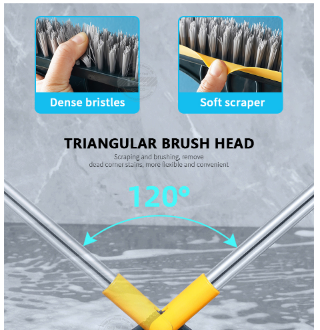 Fungerer som børste og skrape, etter å ha børstet gulvet, kan du enkelt skrape bort sølet. 120 graders roterende børstehode, trekantformede konvekse børster, gummiskrape.