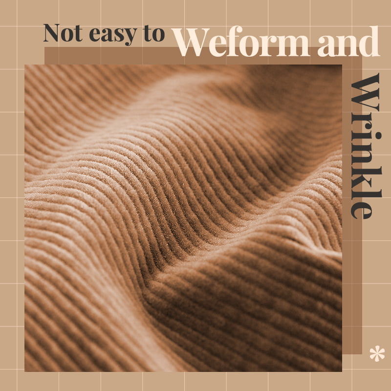 Det høykvalitets kordfløyelsstoffet føles delikat og glatt mot huden. Materialet er elastisk, motstandsdyktig mot deformering og rynker.