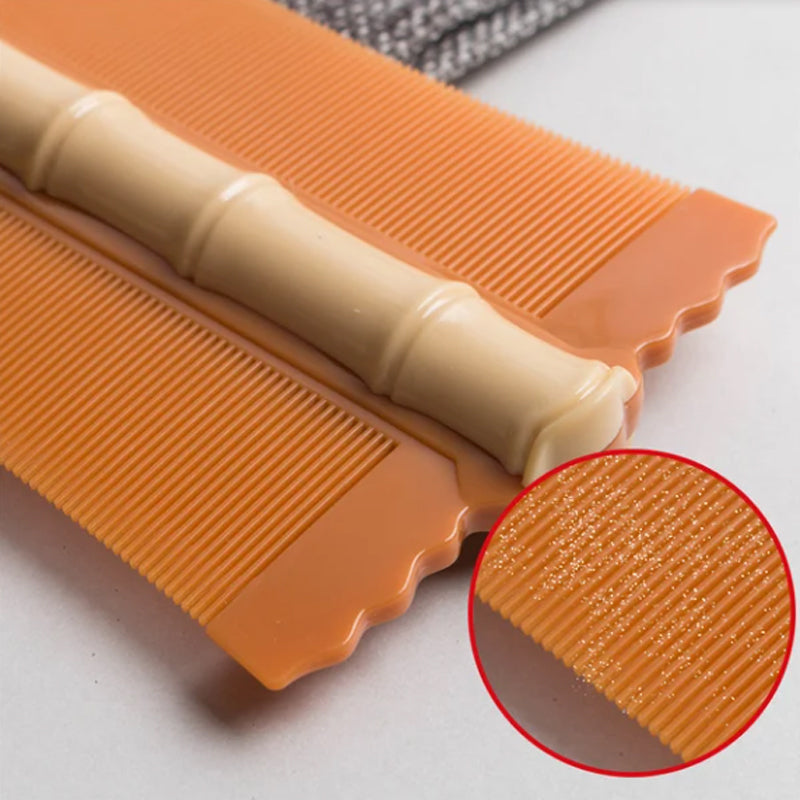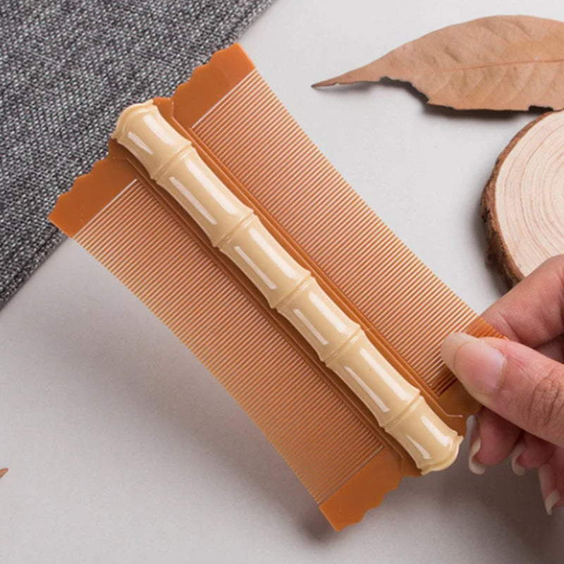 Når du føler kløe i hodet eller en ubehagelig hodebunn, kan det være usynlige lus i aksjon! Men de fleste mennesker innser aldri dette. Den dobbeltsidige finnete kammen i bambus hjelper effektivt med å fjerne lus og egg fra håret samtidig som den skånsomt eksfolierer hodebunnen for å fjerne flass! Den er egnet for voksne, barn og kjæledyr.