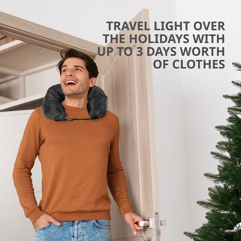Med opptil tre dager med klær, slipper du ekstra innsjekket bagasje og kan enkelt oppbevare den i bagasjen, ryggsekken eller vesken, og den kan brettes i lommen for kompakt oppbevaring av t-skjorter og håndklær til returflyvningene.