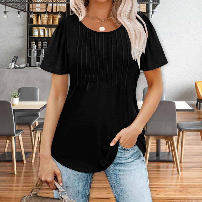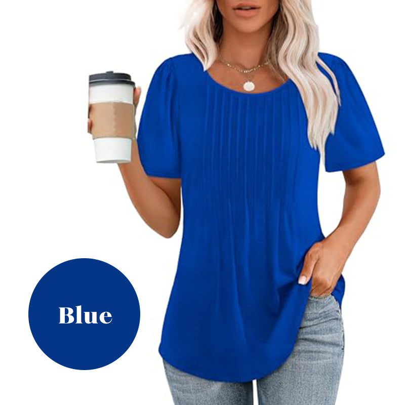 🌈49% rabatt✨Kvinners sommer-T-skjorte med kort erme og plisserte plisseringer