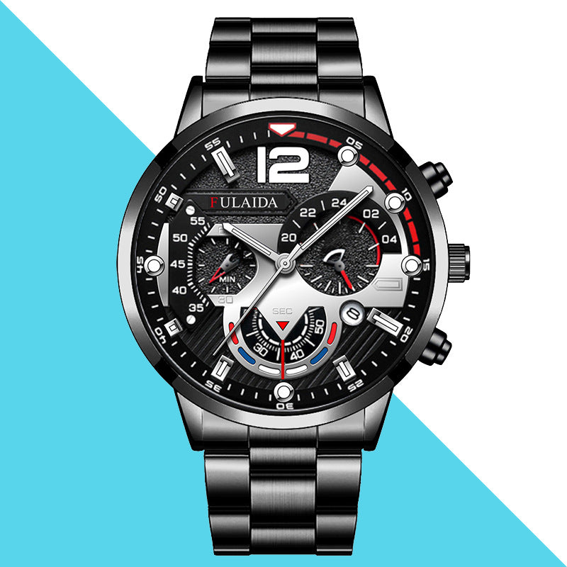 Slitesterk reim i rustfritt stål: Full reim i rustfritt stål med skjult trykknapplås, enkel å bruke eller justere. Det kraftige mineralglasset på urkassen beskytter mot riper.