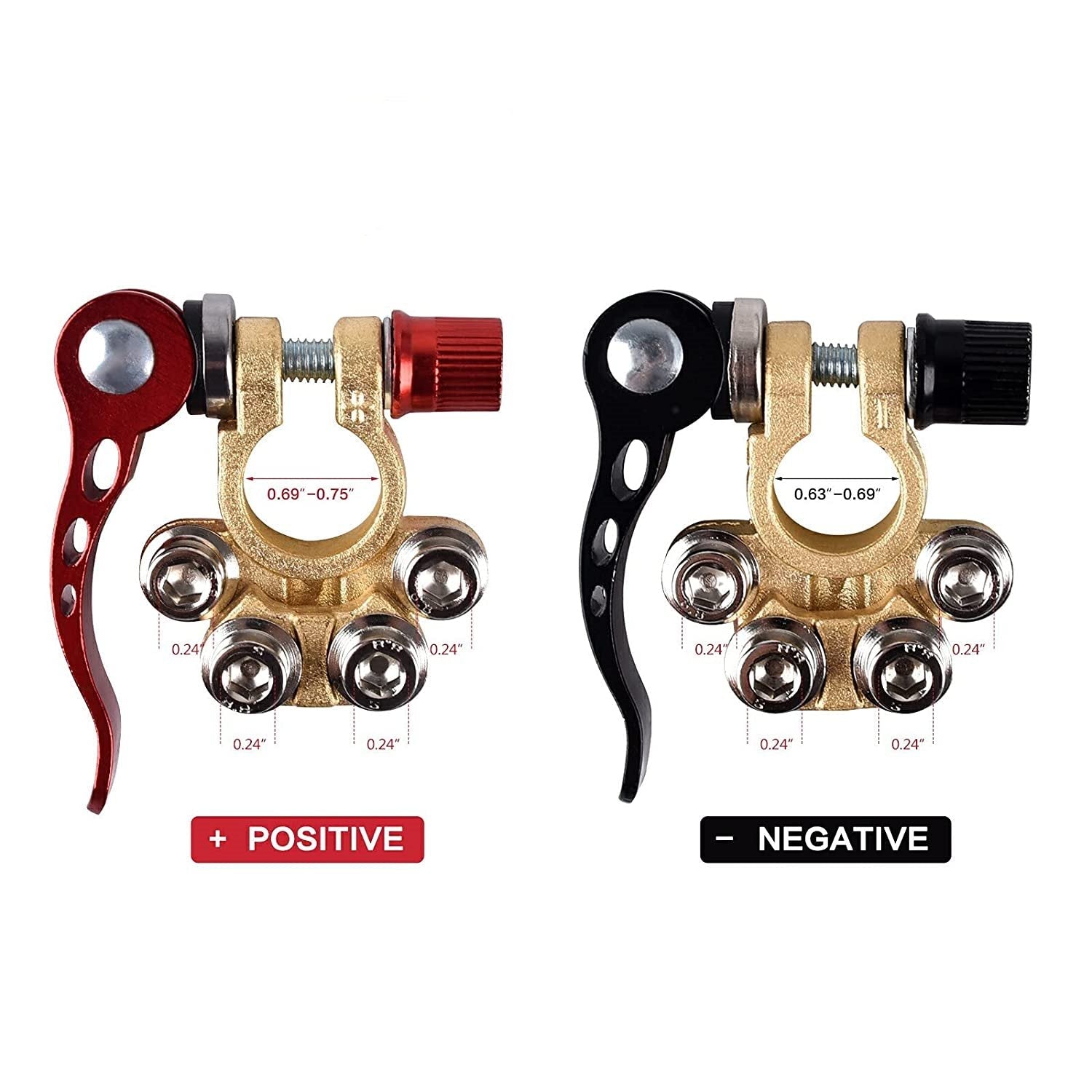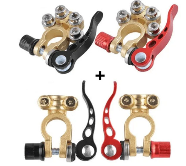 【BATTERITERMINALKONTAKTER】UNIVERSAL Tydelig merket positiv og negativ, Distribusjonsblokk, Klips til biler, campingvogn, lastebil, Perfekt for deg som ofte fjerner batteriet.