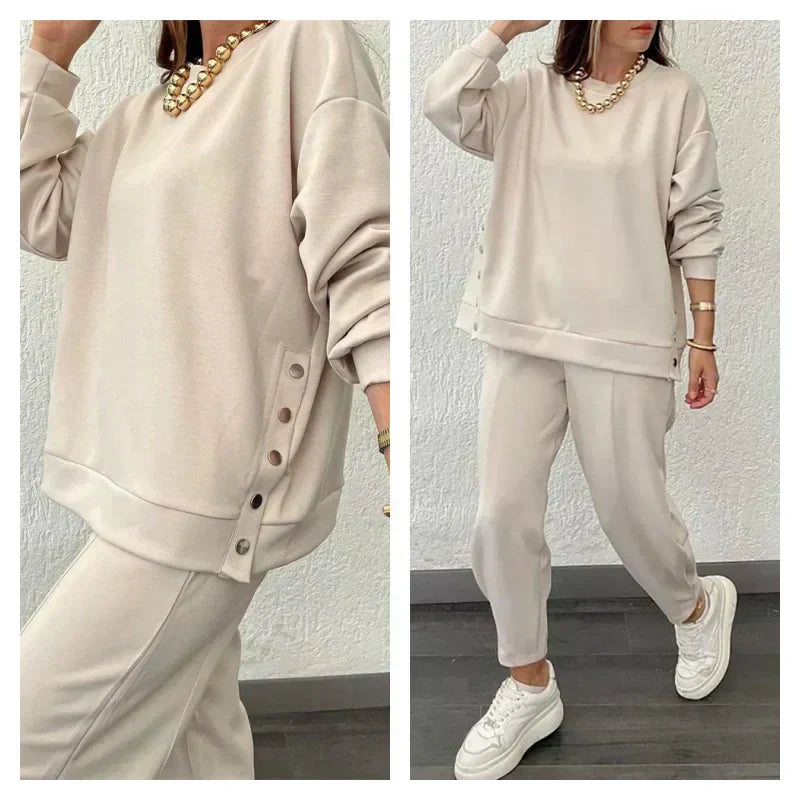 STILIG TO-PIECE-SETT - Med matchende topp og bukse i ensfarget design, som gir en stilig og koordinert look som passer perfekt til en rekke anledninger.