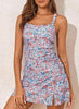 Vintage 2-delt tankini-badedrakt: Skjørtet tankini, tankinitopp med bikinibukse, rynket badetopp, firkantet hals tankinisett med skjørt med skjørtsplitt i siden, badedrakt med åpen rygg, push-up badedrakt med uttagbar myk vattering gir god støtte og fremhever figuren din.