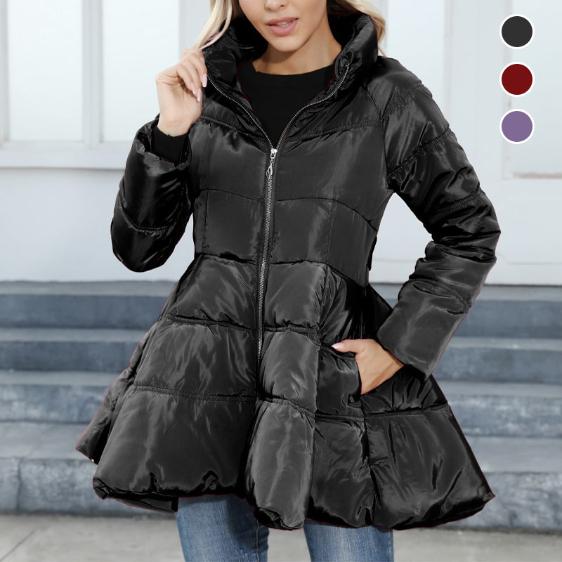 Ideell gave - Dunjakke med høy krage og smal passform for kvinner