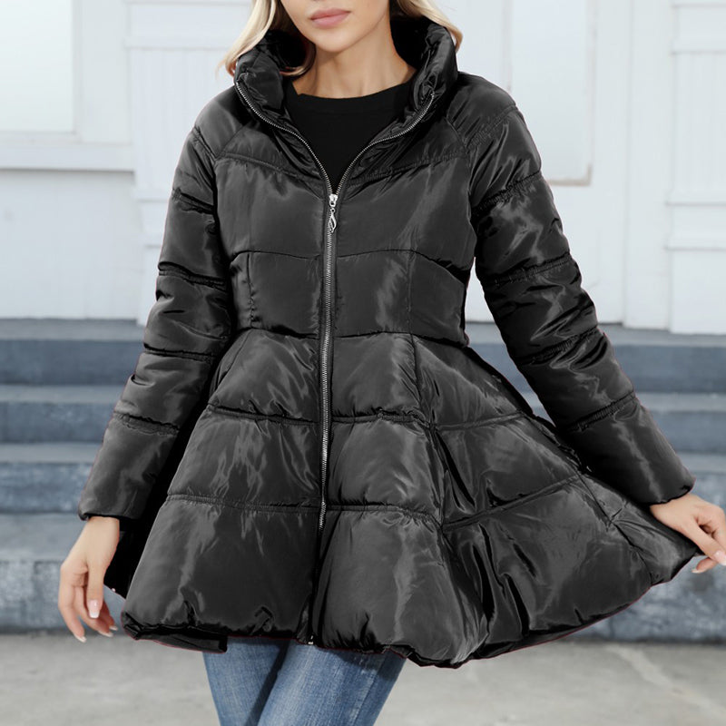 Hold deg varm og stilig i vinter med vår Dunjakke med høy krage og smal passform for kvinner . Denne dunjakke med høy krage og smal passform for kvinner har en smal ståkrage og en smigrende slim-fit-silhuett, noe som gjør den til et perfekt tillegg til vintergarderoben din.